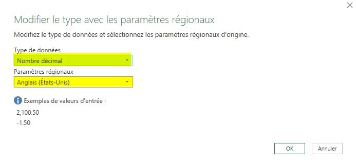 Sélectionner le type de données : Nombre décimal, avec paramètres régionaux : “Anglais (Etats Unis)“