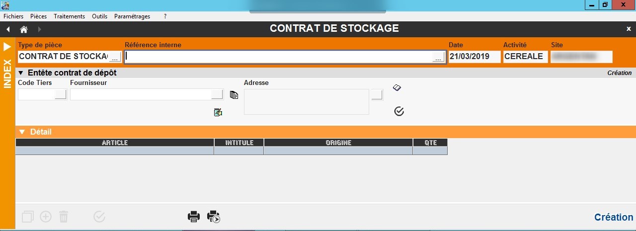Traitement -> Divers-> Génération automatique des contrats de stockage