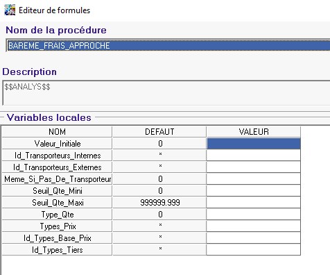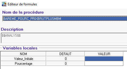 Dans le champ Nom de la Procédure, cliquer sur la flèche noire pour afficher les formules proposées (voir ci-dessous),