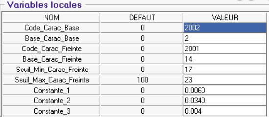 Variables de calcul de bonification/réfaction en fonction des conditions :