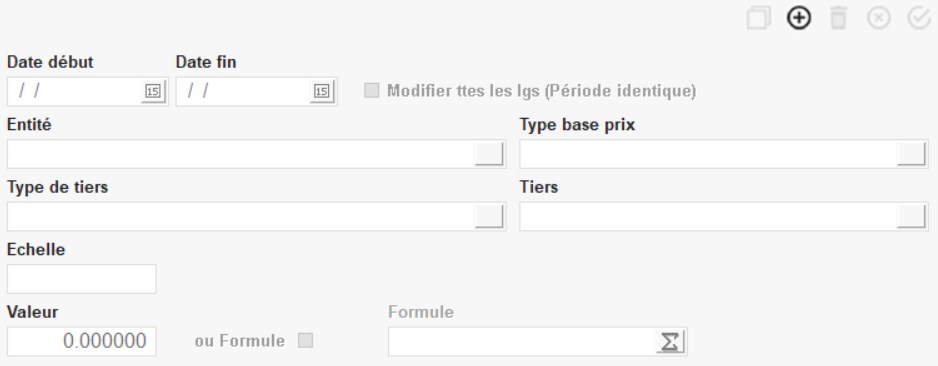 date début/fin de validité des échelles/valeurs ou formule paramétrées dans la ligne.