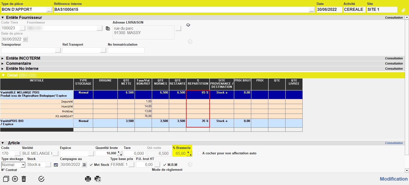 Un bon d'apport peut concerner deux variétés qui ont été cultivées en même temps, dans la même parcelle.