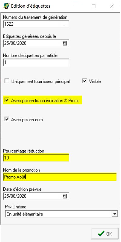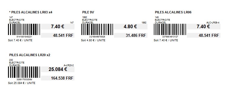 Traitement -> Etiquettes -> Impression des étiquettes article ou porte-broche ou fond de broche ou tête de gondole ou Promotion