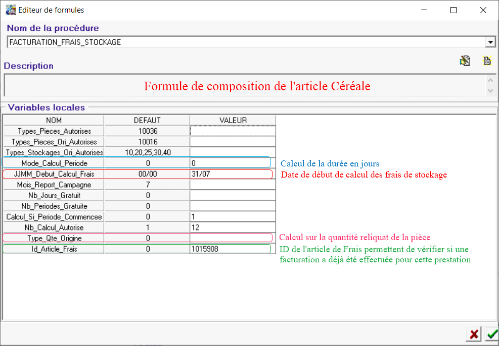 Dans ce cas la formule de barème la plus appropriée est alors : Barème frais de stockage.