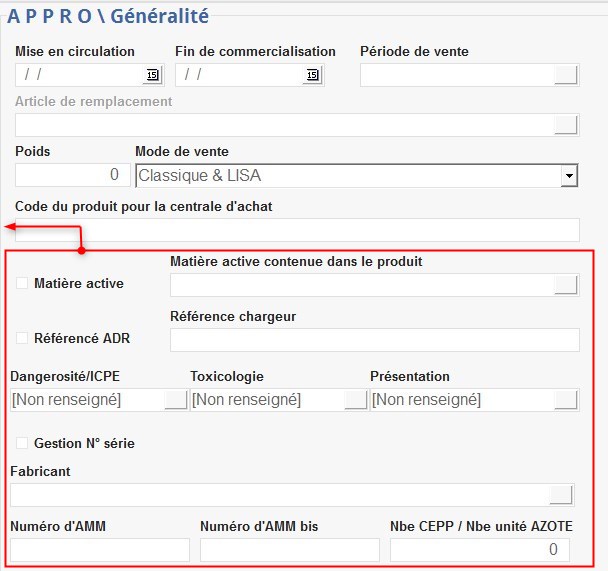 Uniquement pour les articles de l'activité Appro.