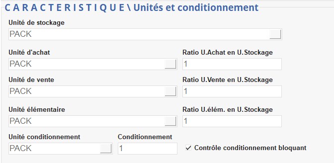 Le contrôle se fait comme suit : la quantité saisie en entrée est divisée par le chiffre présent dans le champ conditionnement (si celui-ci est différent de 0).