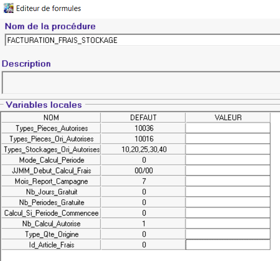 (ex 10036 = ID Facture Vente Céréale, signifie que le composant ne sera utilisé que pour la pièce Facture Vente Céréale et par le traitement faisant appel à la formule FACTURATION_FRAIS_STOCKAGE)
