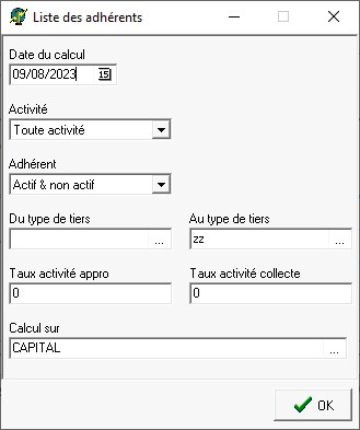 Export des coordonnées des adhérents actifs et/ou non actifs, avec information de leur capital (N-1) et de leur nombre de parts sociales.