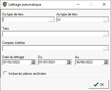 L'audit comptable, en cochant la case Rapport audit lettrage, permet de vérifier si des lettrages sont incomplets un règlement lettré dans son règlement affectation ou une facture lettrée sans son règlement affectation par exemple)