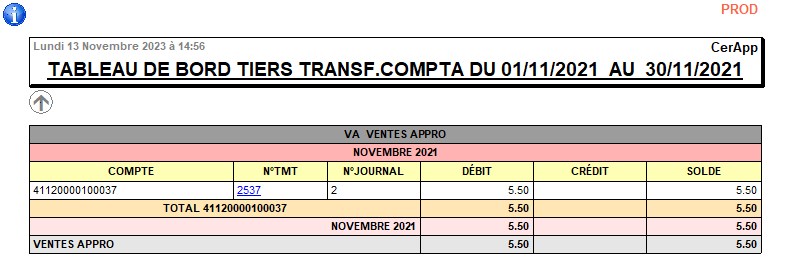 Index -> journaux Comptable -> Rapp. Ecr. Tiers Transf. Cpta
