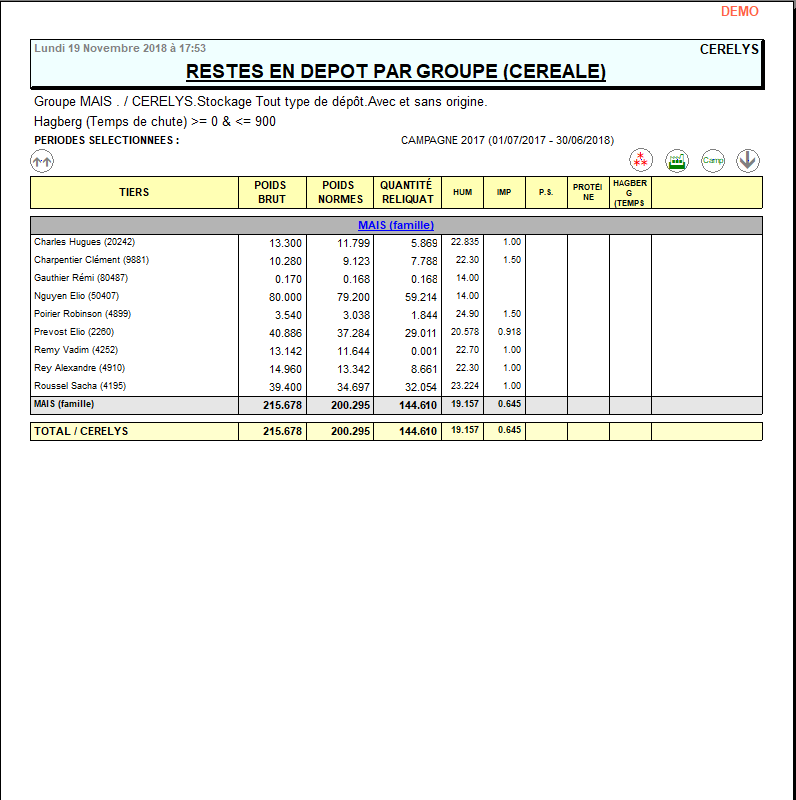 Index -> Résultats Céréale -> Reste en dépôt