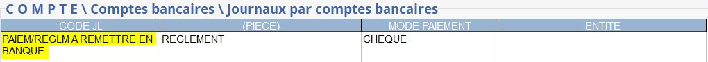 - Les remises en banque ont obligatoirement un code journal “Banque”.