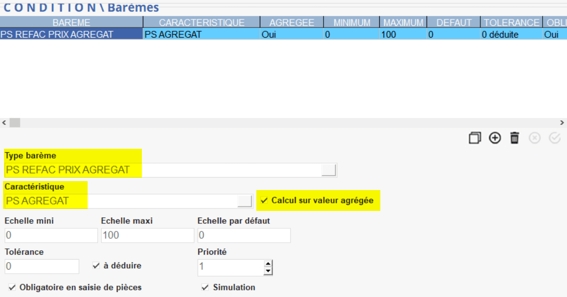 Les valeurs agrégées pour les échelles ne sont utilisées que dans des barèmes correction Prix.