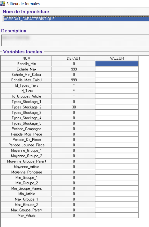 Définit les valeurs minimum et maximum de l'échelle de la caractéristique qui seront prises en compte pour le calcul de la valeur agrégée. - Id Types tiers / Id tiers / Id Groupes Article