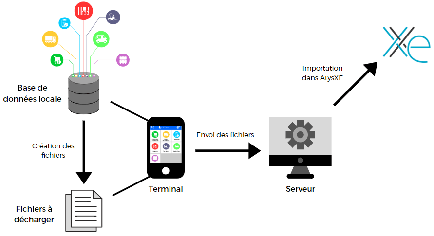 Une base de données dite “offline” est déployée sur votre terminal lors du déploiement de l'application. En réalité, il s'agit de la base de données Atys importée sur l'appareil. Le terminal n'est pas connecté directement à la base de données Atys du serveur mais à une copie de celle-ci en interne (sur l'appareil). De ce fait, la base de données de l'appareil n'est pas mis à jour en même temps que la base de données Atys.
