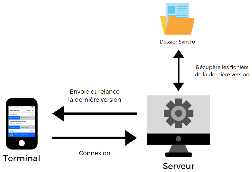 La synchronisation permet d'importer la base de données Atys sur l'appareil et donc de mettre à jour la base de données en interne sur le terminal. Par conséquent, cela permet d'optimiser la vérification de la saisie utilisateur.