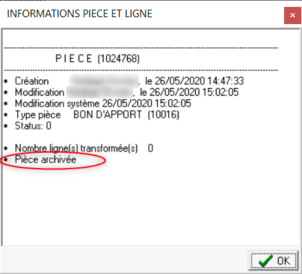 - Les pièces pour lesquelles les pièces destination sont déjà archivées.