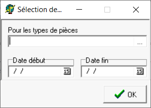 Sélectionner le ou les types de pièces concernées - Date début… Date fin