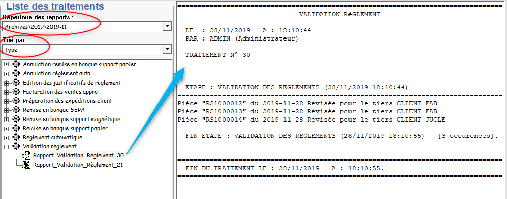 - Le Compte rendu du traitement ne donne aucune information sur ce qui a été archivé mais les rapports archivés sont consultables, en dehors d'ATYS, dans le répertoire: ProcessingReports > Archives > Année > Année-mois. Ils sont classés mois par mois.