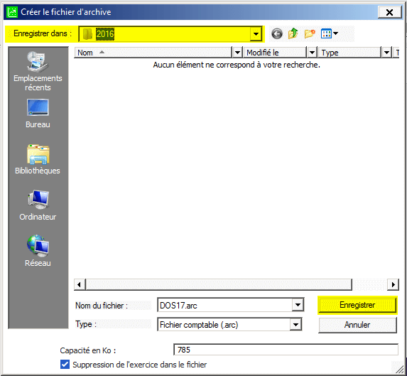 Sauvegarde du dossier
