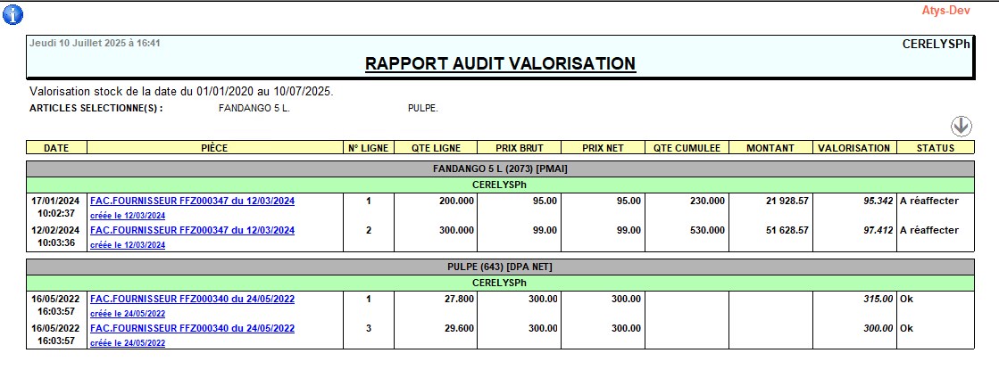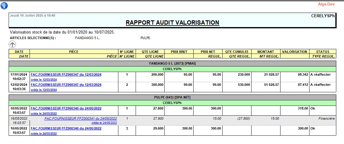 Index -> Rapports Audit -> Audit valorisation