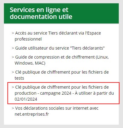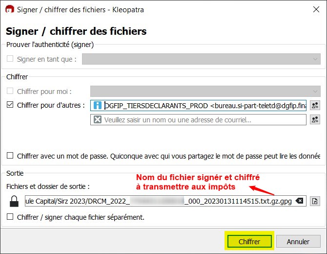 Chiffrement du fichier pour envoi aux impôts
