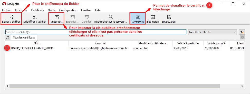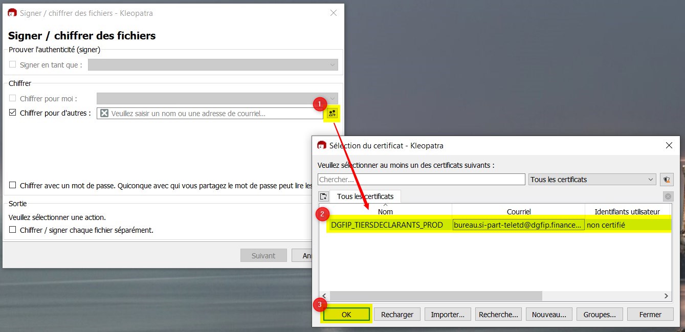 Avant envoi aux impôts, le fichier doit être chiffré selon la procédure suivante.