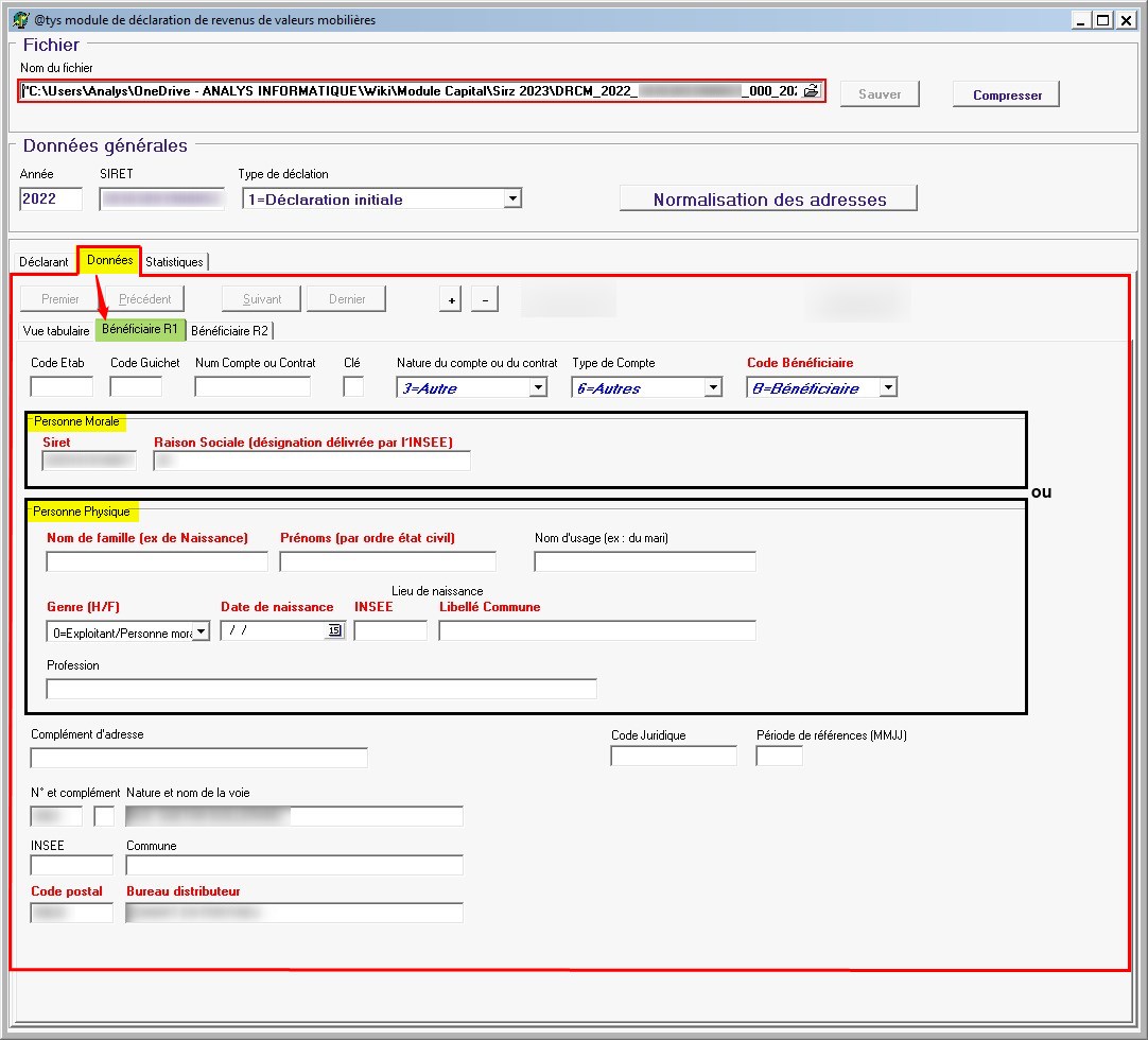 - Dans le bloc “Données générales”, cliquer sur le bouton “Normalisation des adresses” :