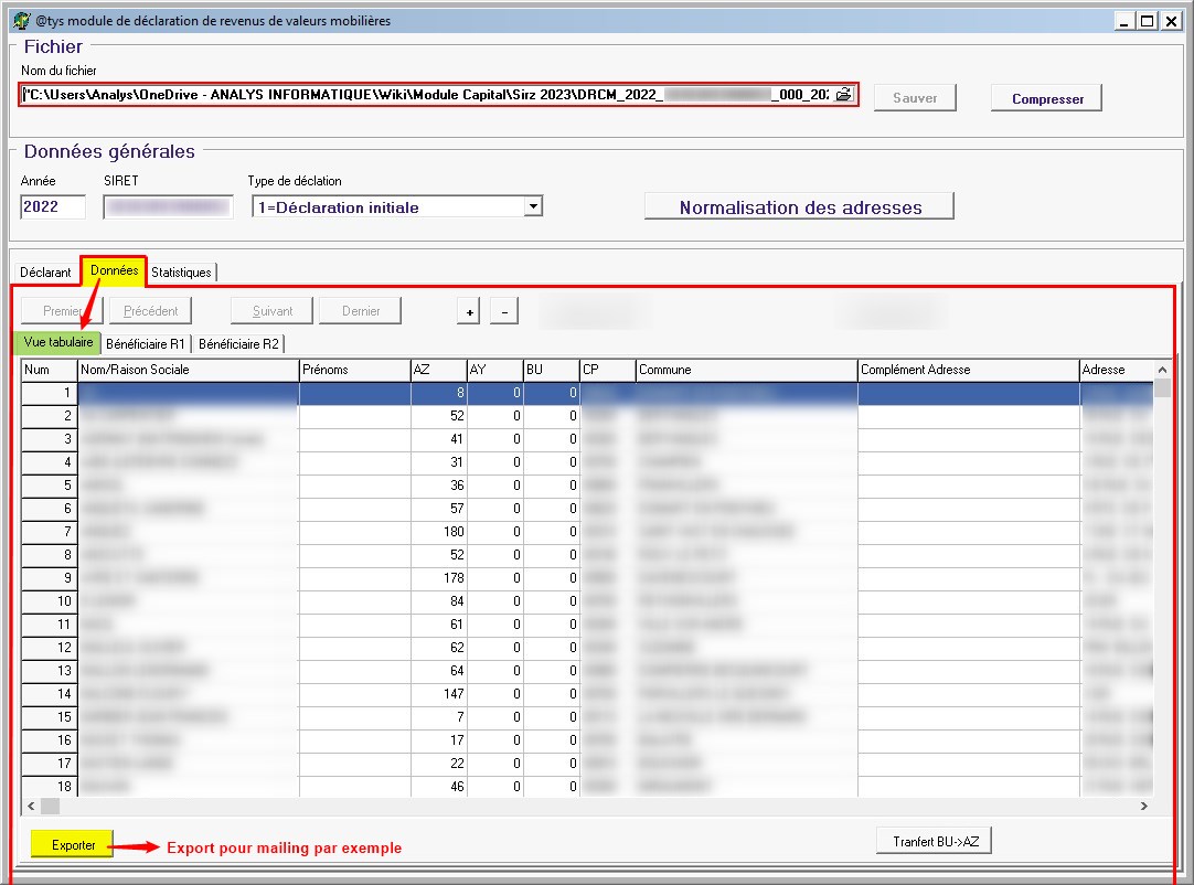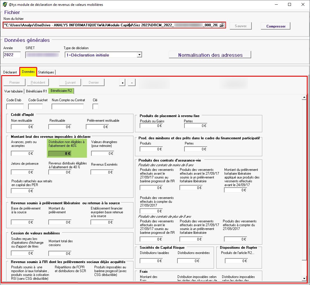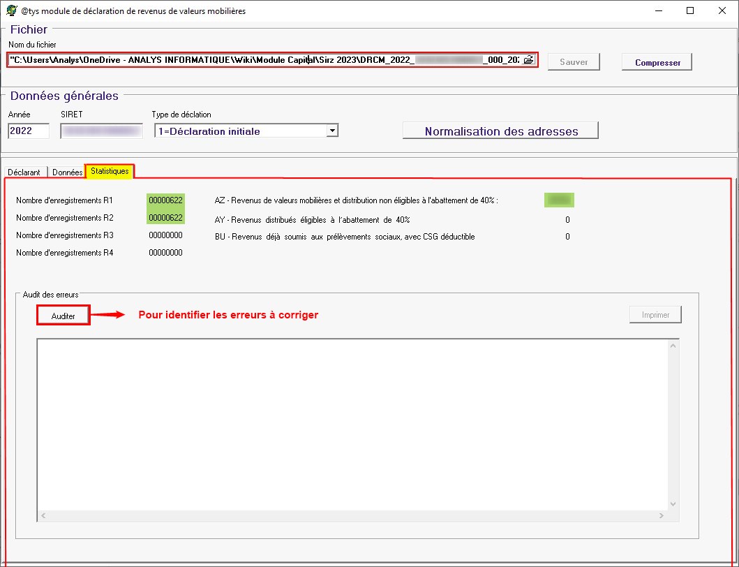 Module capital : Fichier à communiquer aux impôts