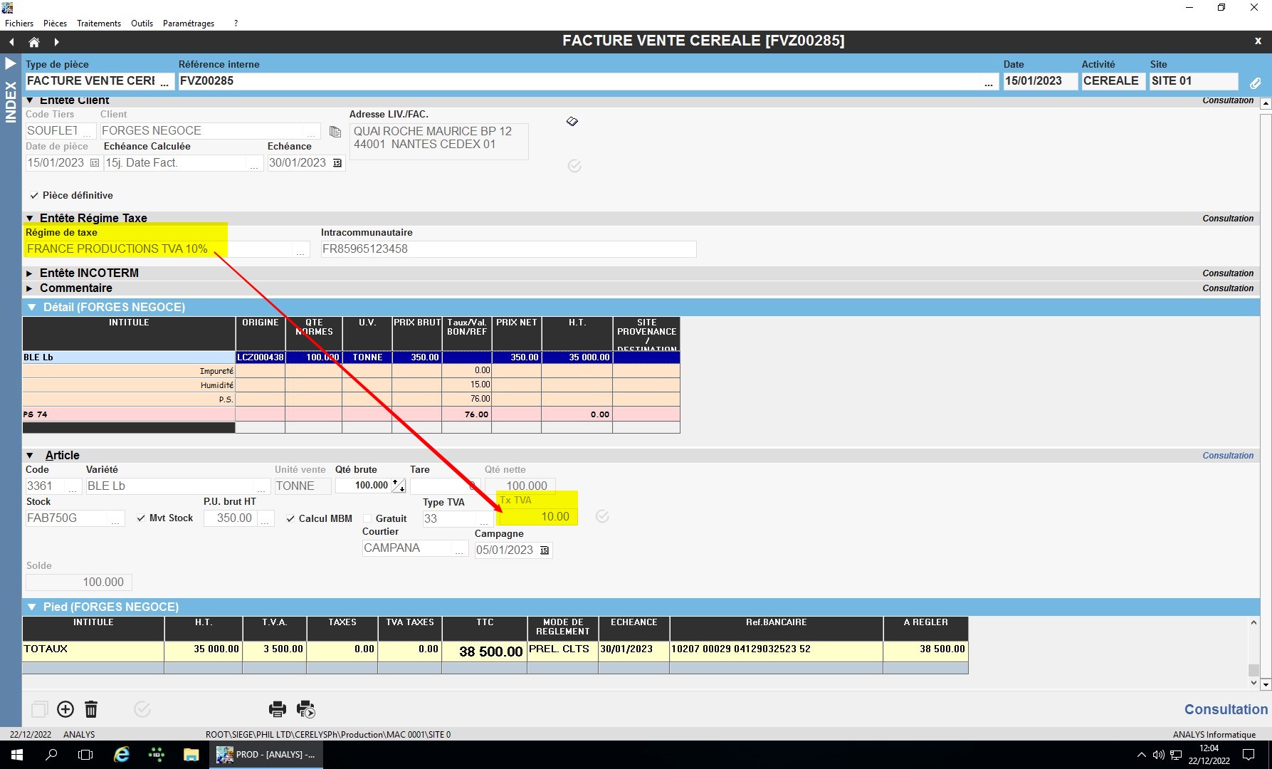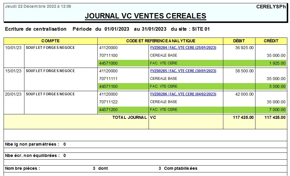 Exemple d’utilisation dans la facture vente céréale en fonction du régime de taxe adapté :