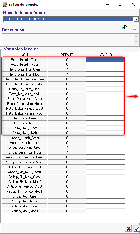 - Rétro Nb Jours : Renseigner le nombre de jours autorisés en rétroactif, en négatif.