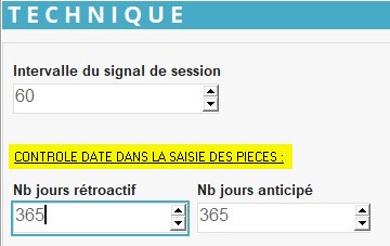 Permet d'interdire la création ou modification rétroactive de pièces :- Avant le mois de l'année précédente si date système avant le mois en question