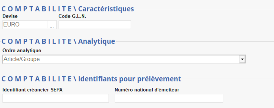 Choisir dans la liste proposée. Sert à la gestion des sections analytiques. - Identifiants pour prélèvement