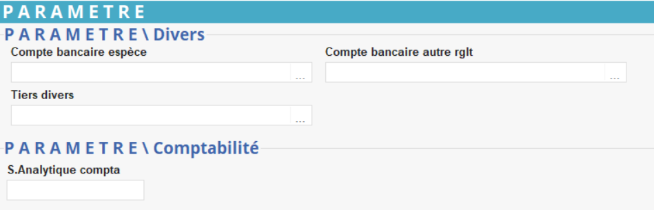 Compte bancaire à utiliser par défaut lors des encaissements immédiats en facturation LISA et facturation comptant pour les espèces. - Compte bancaire autre règlement
