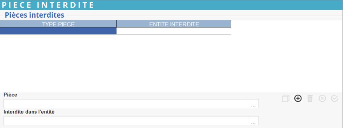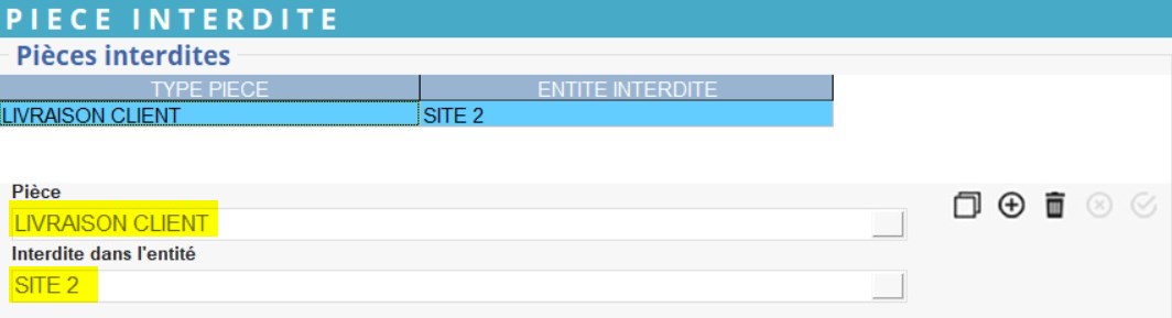 Indiquer les types de pièces, créés sur le site, qui seront interdit (bloqués temporairement ou définitivement) en import sur l'entité définie ici.