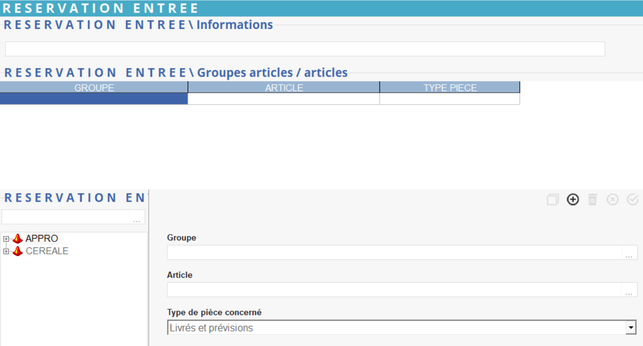 Reprend le groupe article / Article mis en réservation ou bien possibilité de renseigner des informations manuellement.