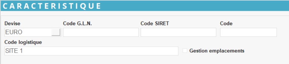 Code logistique du site (souvent = Nom du stock). Sert pour certains regroupements ou consolidations notamment au niveau des quantités en stock et capacité de stockage ainsi que pour le compte de crédits dans le cadre de la durabilité (bilan massique).