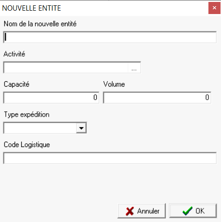 - Activité : sélectionner une activité : Appro ou Céréale.Si une cellule sert à la fois en Appro et en Céréale, selon les périodes, il est nécessaire de créer 2 entités stocks.