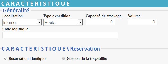 Capacité volumique de l'entité (m³ en général). Le volume est calculé en fonction du Coefficient de volume paramétré dans chaque article. - Code logistique