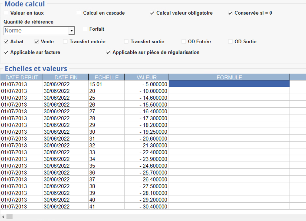 Sinon, les formules de barèmes permettent également de définir le calcul du barème précisément :