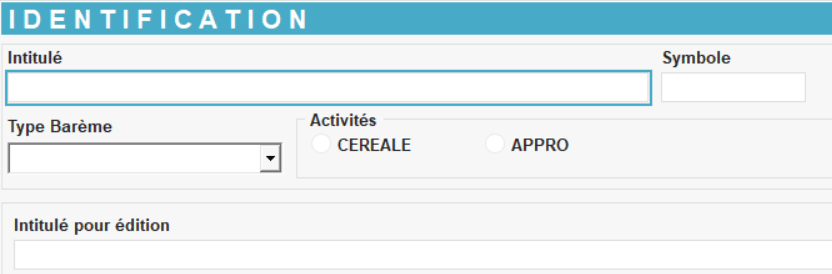 L’activité Céréale doit impérativement être cochée avant de choisir le type de barème, sinon le menu déroulant est vide. - Intitulé pour édition