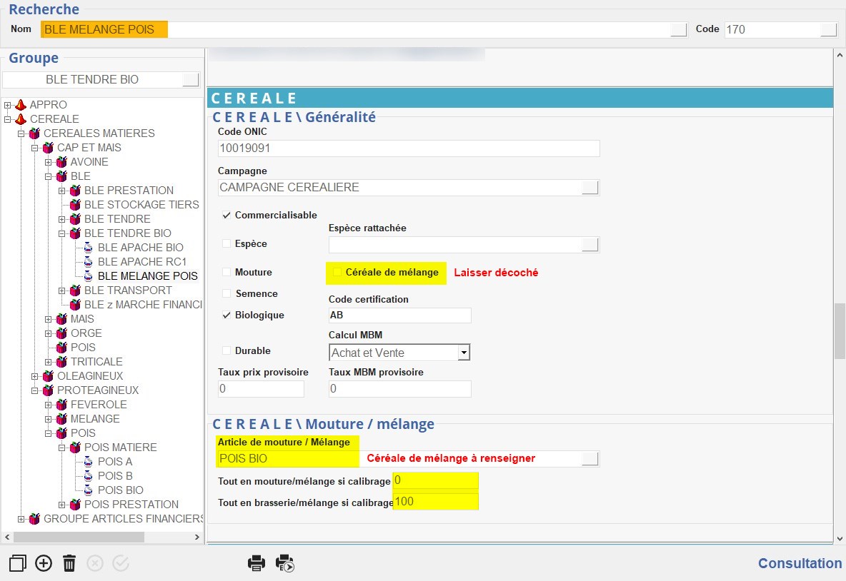 Dans l'article de mélange, on précise que c'est un article de mouture/mélange :