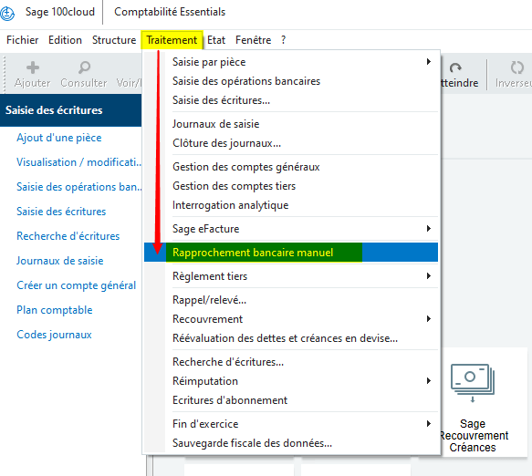 Accès au rapprochement bancaire