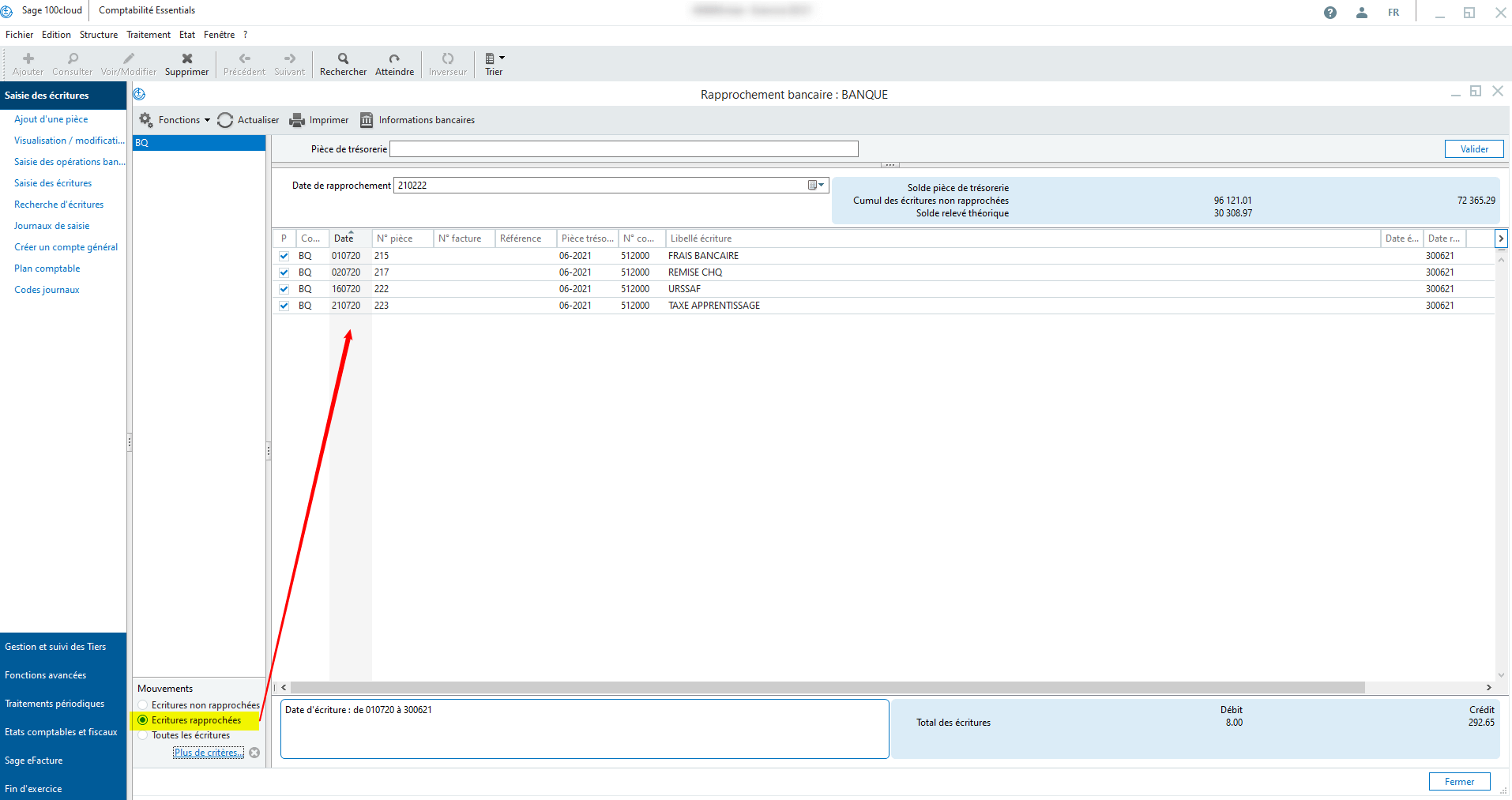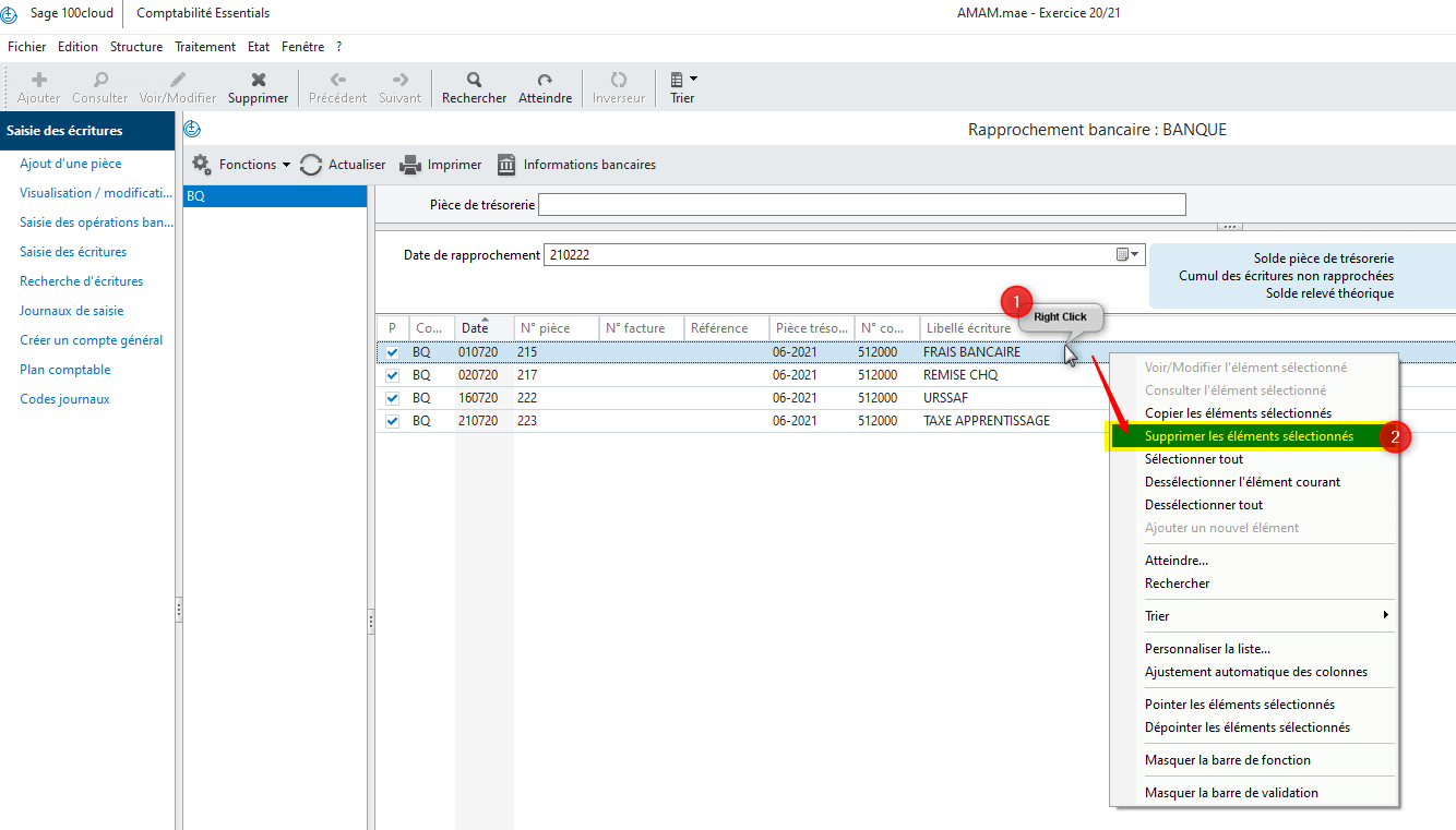 Procédure pour dépointer des écritures d'un rapprochement bancaire.