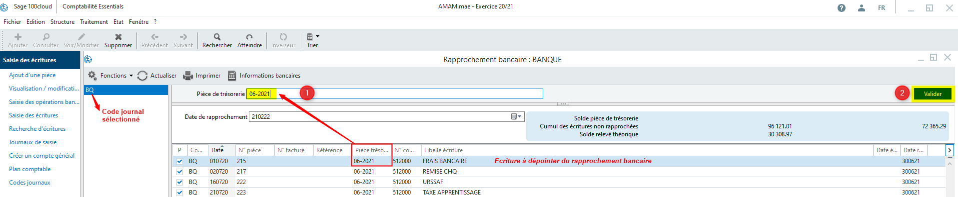 - Renseigner le code journal de la banque concernée.