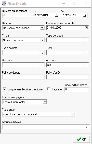 - Pas de simulation : Les factures afficheront un numéro de pièce définitif, et seront potentiellement modifiables (en fonction du paramétrage du champ inaltérable du type de pièce) mais non supprimables