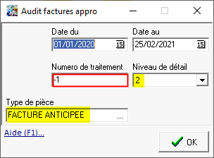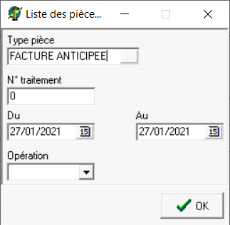 - Les pièces de commande anticipée sont facturées intégralement, il est impossible de n'importer que certaines lignes (bouton grisé) ou de supprimer certaines lignes.