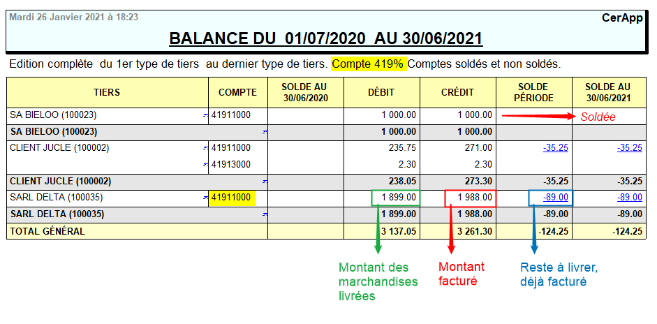 - Une commande client anticipée est considérée comme non soldée tant qu'elle n'est pas livrée (même si elle a été facturée).