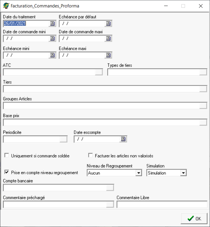 Significatif uniquement si des niveaux de regroupement différents de 0 sont paramétrés dans les groupes d'articles et que le critère “facturation regroupée” n'est pas coché dans la fiche tiers.