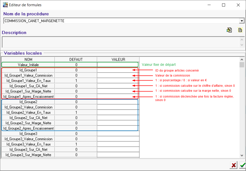 - Si la formule Commission CA net - Marge nette est sélectionnée (voir ci-dessous), alors il est possible d'affiner le calcul du commissionnement.